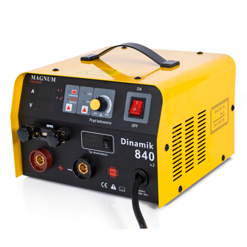 MAGNUM DINAMIK V2 to nowoczesne urządzenie łączące funkcje prostownika i wspomagania rozruchu, przystosowane do ładowania różnorodnych akumulatorów, w tym kwasowo-ołowiowych (Pb), AGM/GEL oraz litowo-żelazowo-fosforanowych (LiFeP04). Dzięki wydajnym funkcjom oraz wysokiej jakości komponentom, prostownik ten jest niezastąpiony zarówno w warsztatach, jak i przydomowych garażach. MAGNUM DINAMIK V2 umożliwia szybki rozruch pojazdów z instalacjami 12V i 24V oraz skutecznie zastępuje rozruchy transformatorowe.