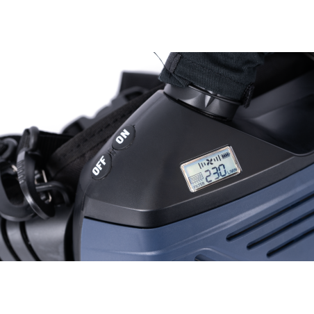 - Bateria Li-ion 14,8 V / 2,6 Ah / 38,48 Wh; ~10 h pracy przy 170 l/min (warunki jak w instrukcji); ładowanie ~2 h