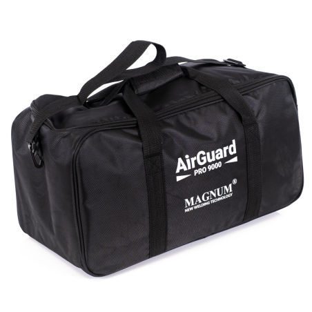 MAGNUM AirGuard PRO 9000 to aparat filtrująco-nadmuchowy służący do ochrony układu oddechowego poprzez wytwarzanie nadciśnienia powietrza w obszarze przyłbicy, co wspomaga wentylację i ułatwia oddychanie podczas spawania. Zestaw wyposażono w filtr TH3 P R SL o skuteczności 99,8%, przeznaczony do ochrony przed pyłami i aerozolami (test NaCl oraz olej parafinowy), spełniający wymagania normy EN 12941.